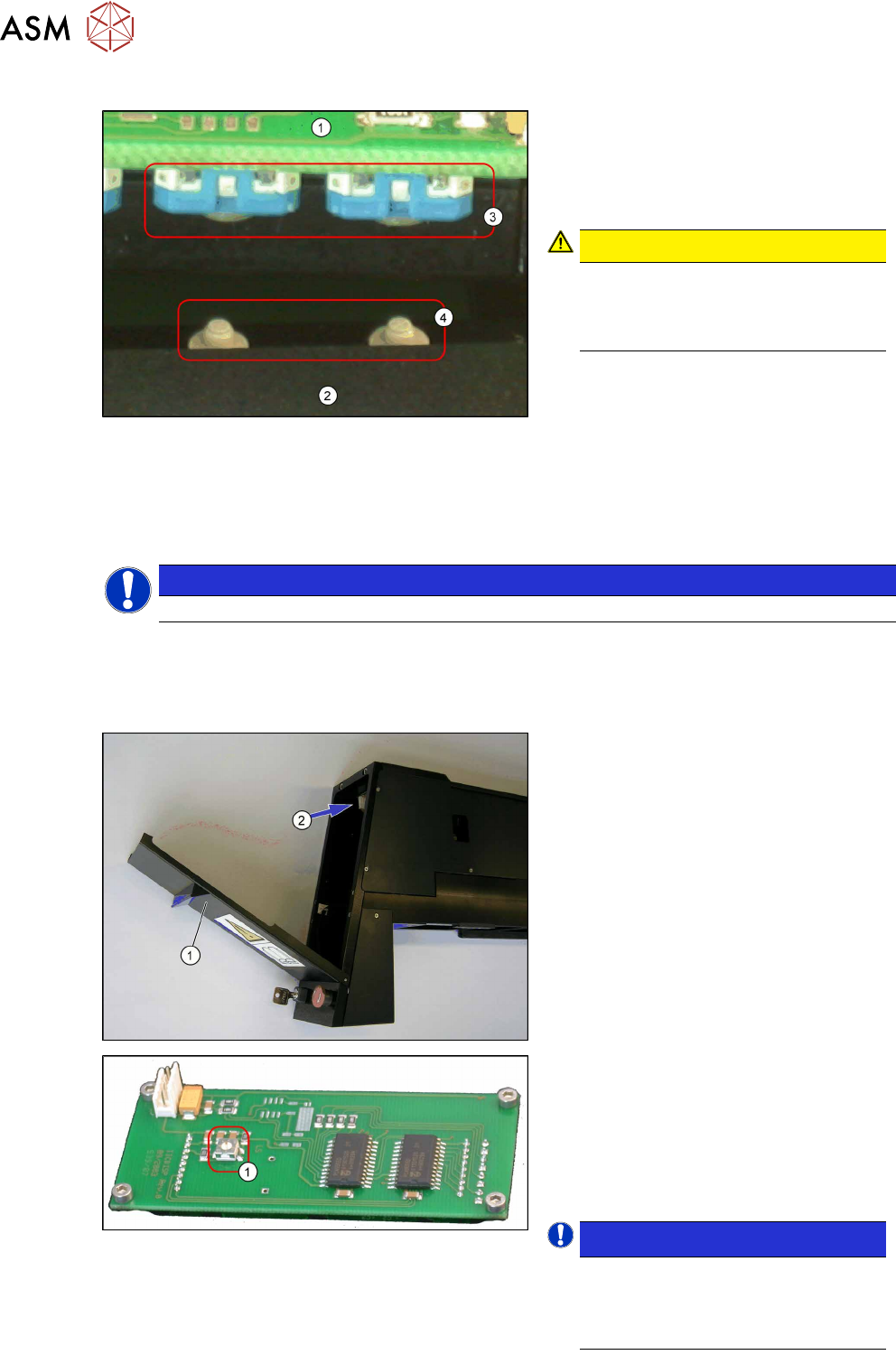 4 Servicearbeiten 4.2 Ersatzteiltausch 34 Serviceanleitung SIPLACE LDU-X Linear Dipping Unit 11/2017 Einbau 1. Display-Platine 2. Display-Gehäuse 3. Schalter auf der Display-Platine 4. Noppen der Tasten VORSICHT! Achte…
