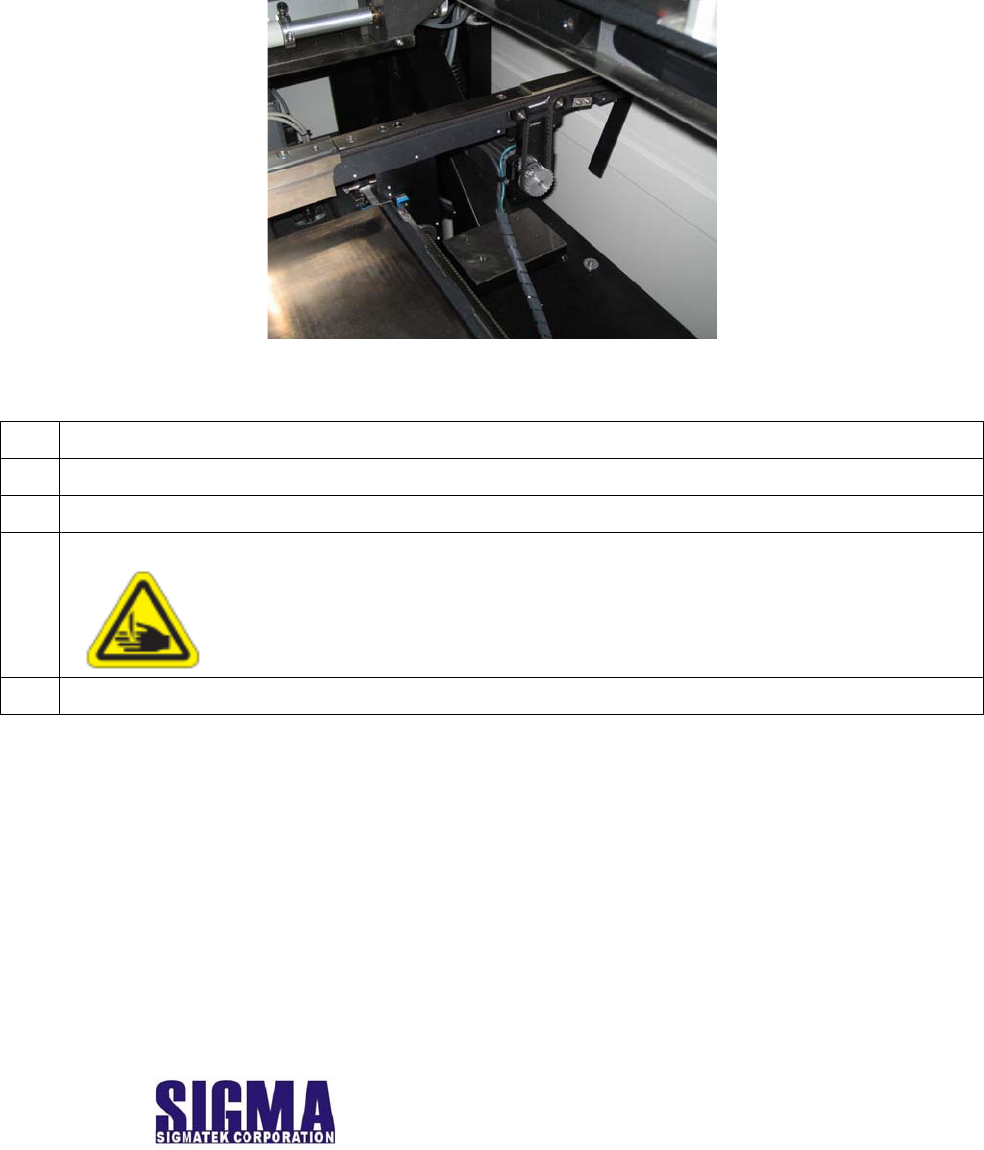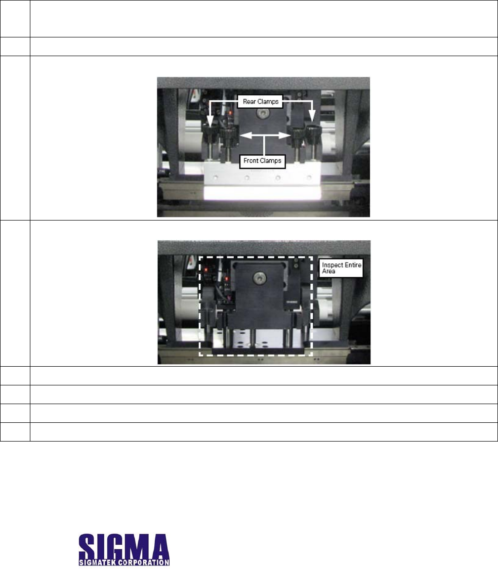 Inspecting/Cleaning the Transports Track Transport Belts (檢查/清潔傳送軌道上傳送皮帶) 保養種類介紹 : 週保養或印刷21000片 估計完成時間 : 5分鐘 使用工具,材料 : 乾淨的布,異丙醇 動作步驟 1. 打開機器前門罩子。 2. 從工具列中選放開鋼板夾住汽缸按鈕,將鋼板移出印刷機。 3. 從工具列點選 Move Vision Gantry to Rear 按鈕,將相機移…