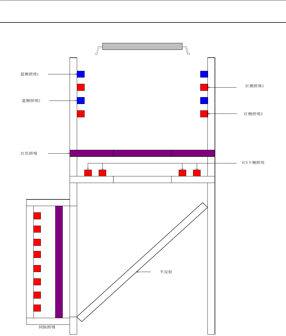 动作说明书 3-43 ハーフミラー 同軸照明 VCS下方照明 赤色デフューザ 赤サイド照明1 赤サイド照明2 青サイド照明1 青サイド照明2 反射,侧照明装置