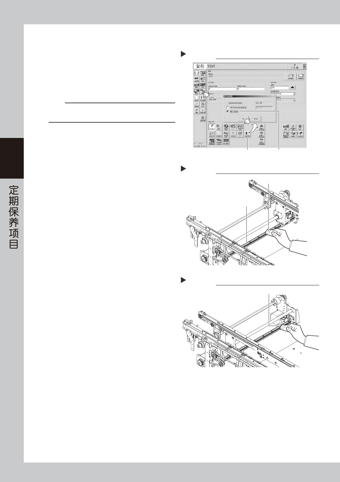 3-35 3 5 加润滑油。 1. 在传送宽度为最小的状态下,用手指将指定的 润滑油 (NSL) 均匀地涂抹在六角轴的表面与滚 珠丝杆的表面以及螺旋槽部。 2. 关闭贴片机的正面机盖,解除贴片机的紧急停 机状态。 e 3. 按照 Step1 的步骤将传送宽度调到最大。 4. 按紧急停机按钮之后,打开贴片机的正面机盖。 5. 用手指给在 1. 中未涂抹到的部位涂抹润滑油。 55350-KMG-00 6 使润滑油均匀遍布滚珠丝杆与六角轴。 …