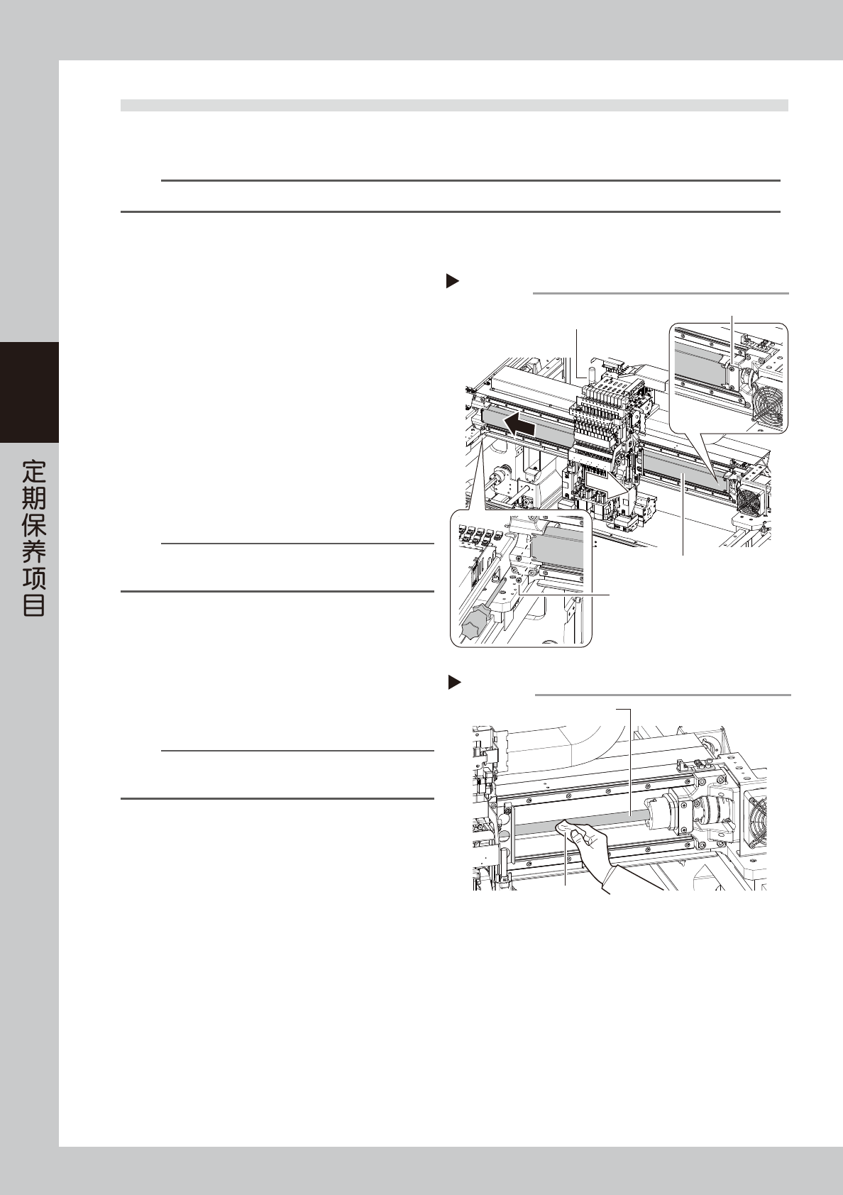 下面,介绍 X 轴的点检、清洁、加油方法。关于加油位置与加油方式,请参阅“第 5 章 加油位置一览”。加油之前,