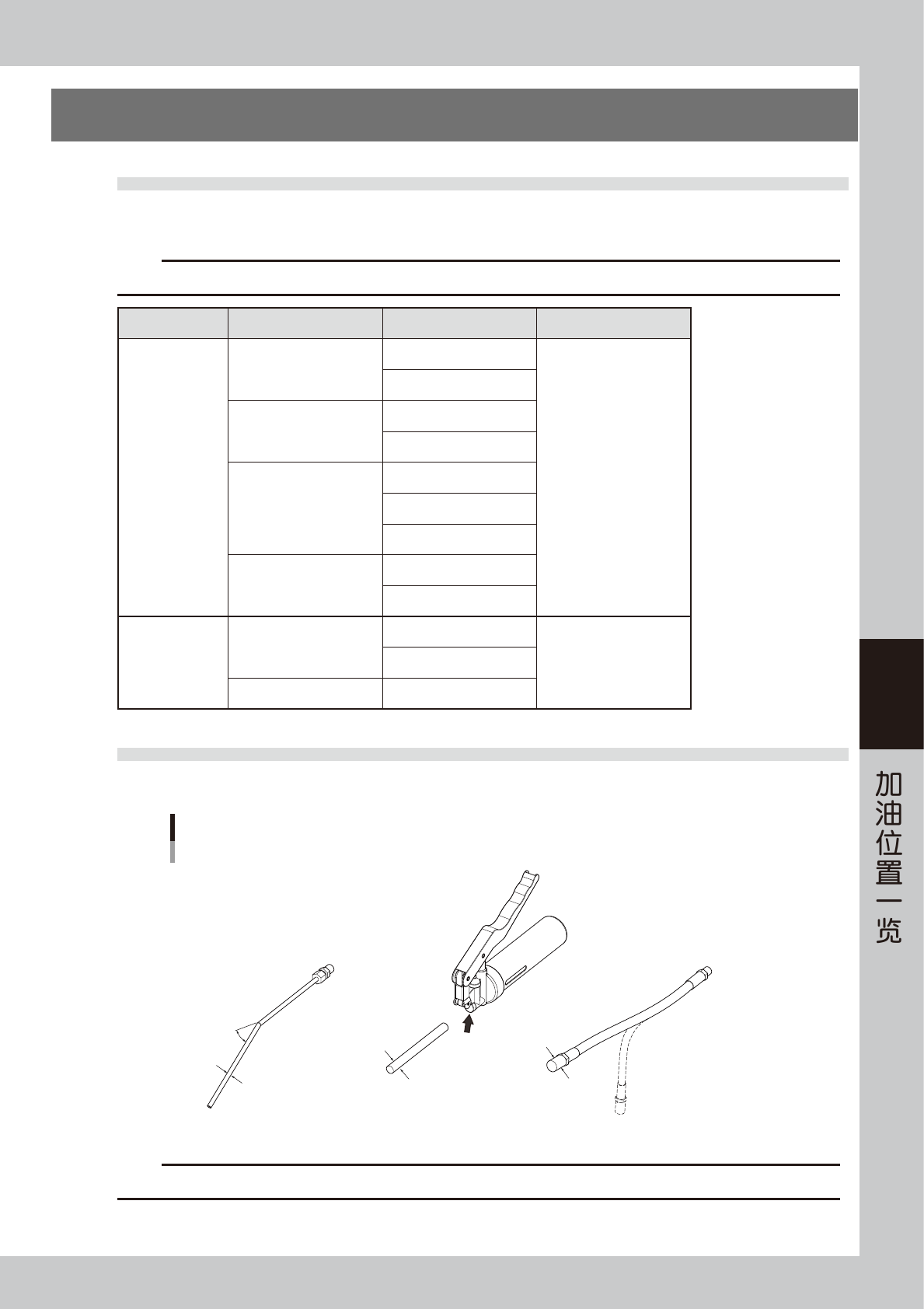 加润滑油时使用润滑油枪。请根据加油位置,从 3 种枪嘴中选择适用的枪嘴。