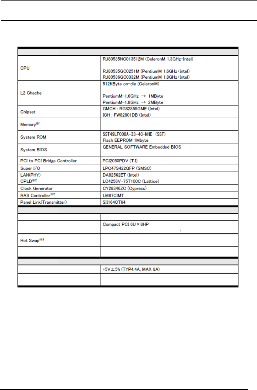 表5−1−1 CPU基板的主要规格