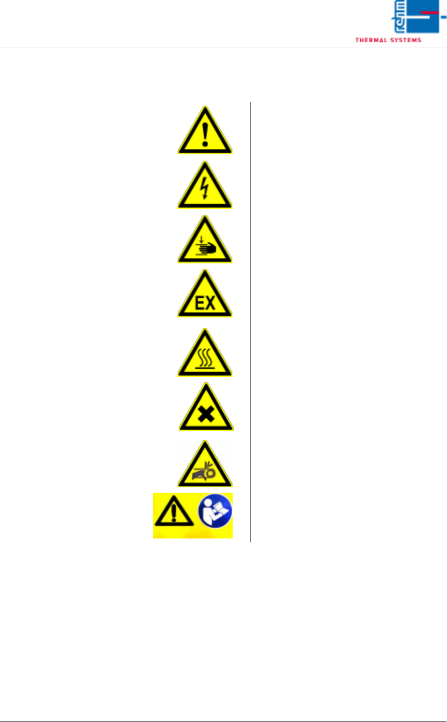 Page 10 Vision XP+ V AC 2 Opera ting Safety 2.2 W arning Signs on the Systems Operating Instructions V ersion 1.5 2.2 W arn ing Signs on the Sy stems W arning Signs Warning about hazard area W a rning against hig h volta…