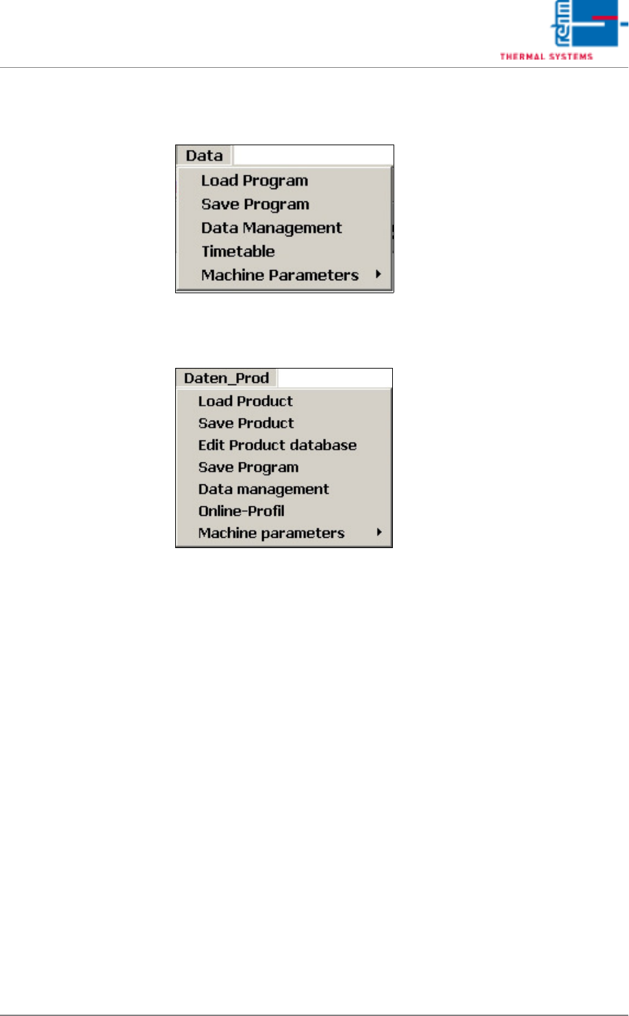 Fig. 5-34 Window Data Menu with product data bank (option)