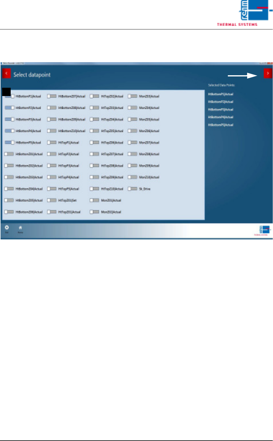 Page 158 V ISION XP+ V AC 6 Rehm Recorder 6.2 Live mode configuration Operating Instructions V ersion 1.5 6.2.4 Set parameters The recording interval for all data points (in milliseconds) can be s et from thi s screen. F…