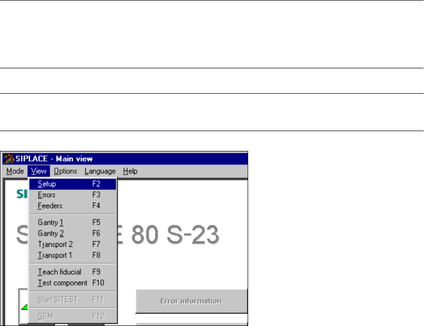 3 Introduction and Ba sic Concepts User M anual SIPLACE S -23 HM 3.3 User Interface - Views and Menus Software Version SR.406.xx 02/00 US E dition 114 Switch to o perating syst em ... 3 Y ou use thi s menu item to s witc…