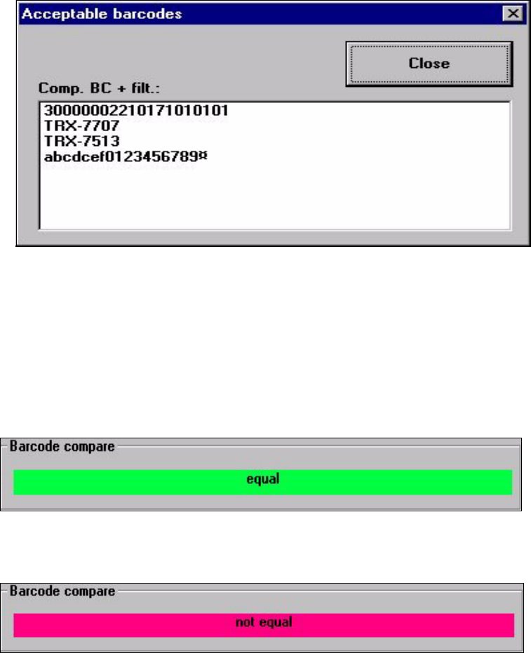 The results of the barcode comparison will be displayed in the display field of the "Component