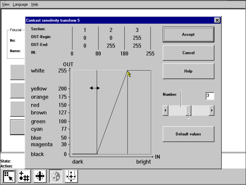 OUT Begin: OUT End: Ranges of values for the transformation of the individual sections 6
