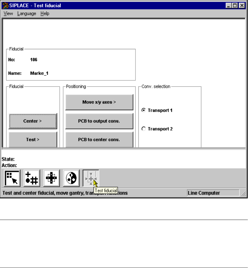 In the Test fiducial menu the following options are available: 6