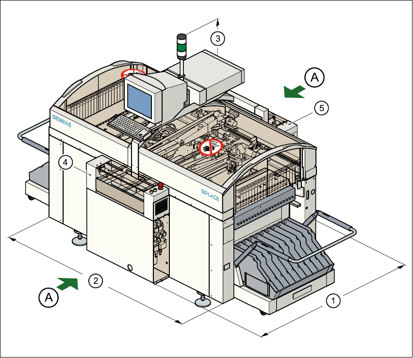 User Manual SIPLAC E S-23 HM 1 Introduction, technical dat a Software Version S R.406.xx 02/00 US E dition 1.9 Dimensions and weight of the placement s ystem 33 1.9.3 The placement system’ s center of gravity 1 Fig. 1.9 …