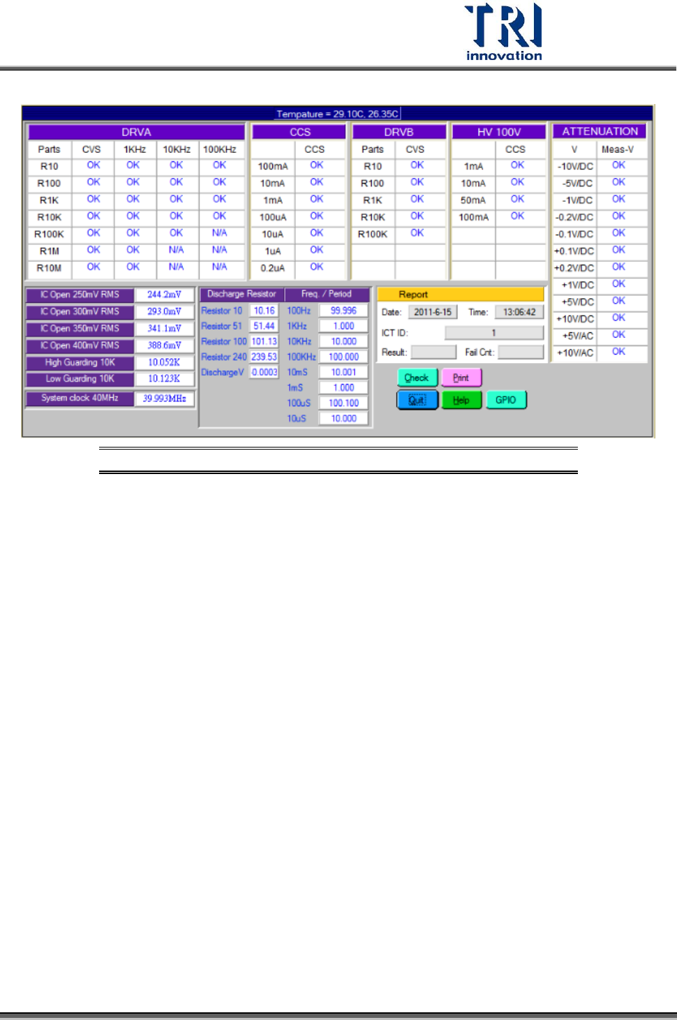 Test Research Inc. TR 518 SII 使用 手冊 -- 維護以及保養 9 Figure 4: System Hardware Self -Check 視窗 --- TEST PASS 4. 點下 QUIT 按鈕,回到主畫面