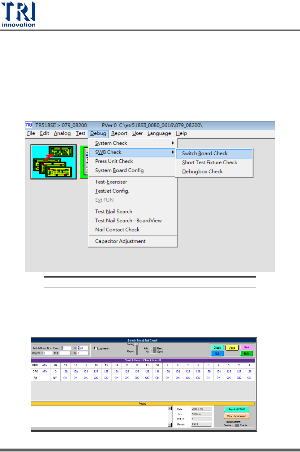Test Research Inc. TR 518 SII 使用 手冊 -- 維護以及保養 11 Figure 6: Switch Bo ard Chec k 視窗 --- TEST PASS