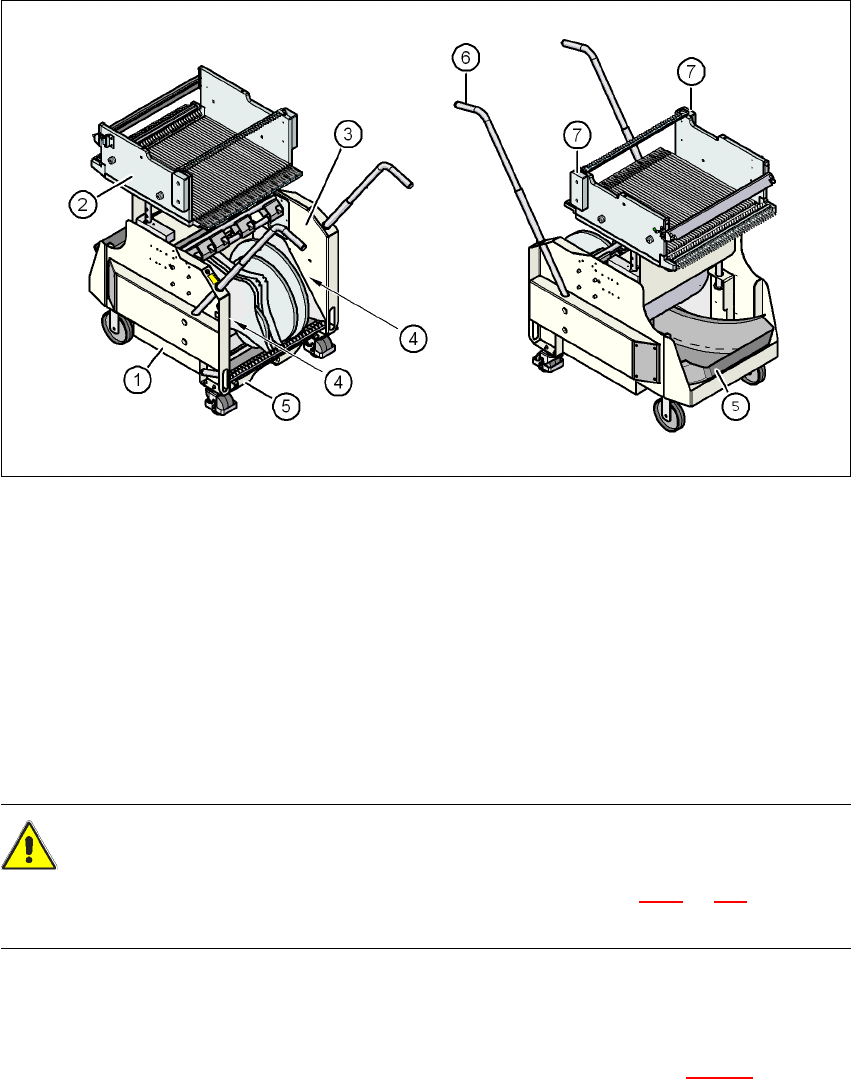 Komponentide käru põhiosadeks on raam, komponentide laud sööturimoodulite kinnitamiseks,