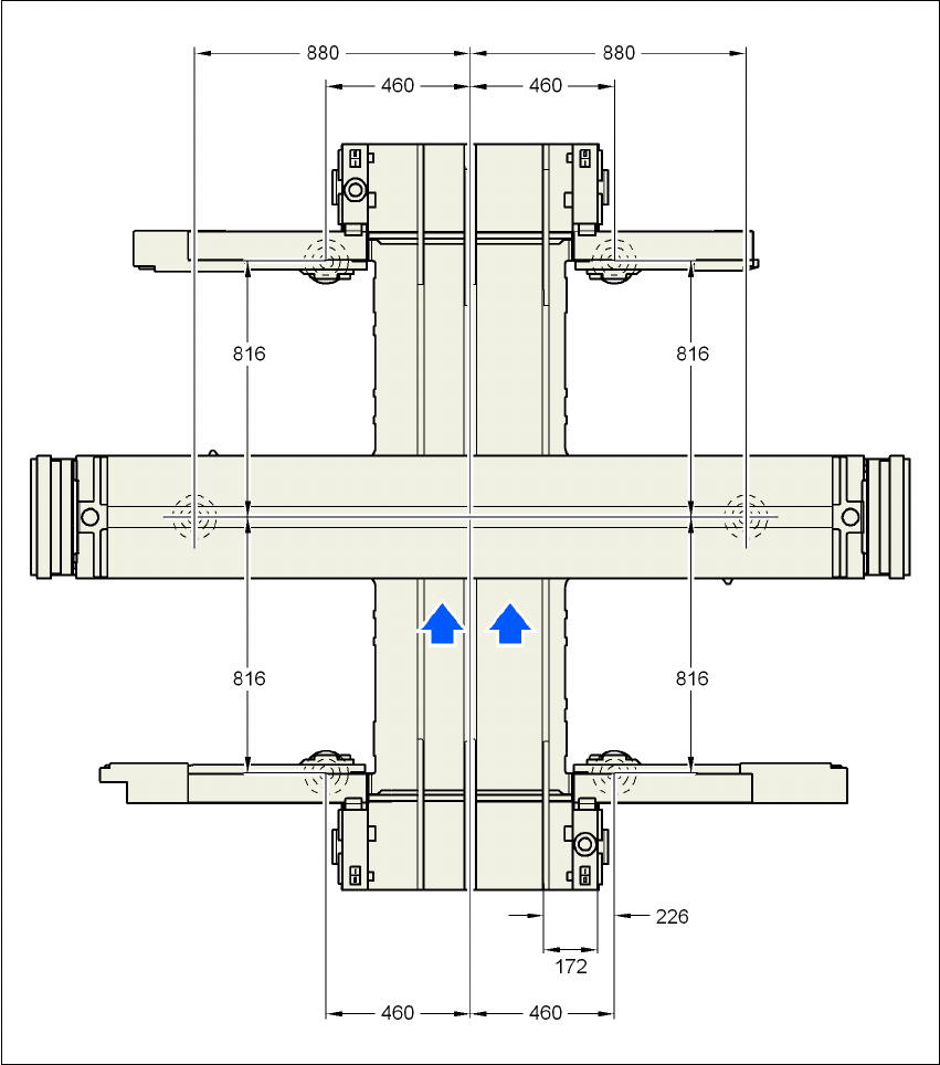 Joon. 4.3 - 25 Masina jalgade vahelised kaugused ja statsionaarne vasakpoolne serv millimeetrites kahe lindiga