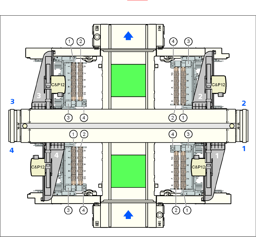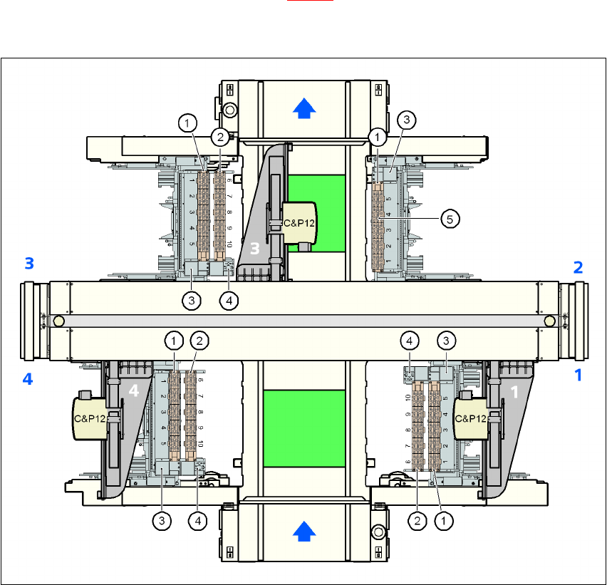 6 Jaama laiendamine Kasutusjuhend SIPLACE X-Seeria 6.1 Imiotsakute vahetusmehhan ism Tark varaversiooni SR.605.xx põhjal 07/2008 EE väljaanne 380 6.1.2.3 C&P12 tööpea imiotsaku te vahetusmehhanismide asukoht masinas …