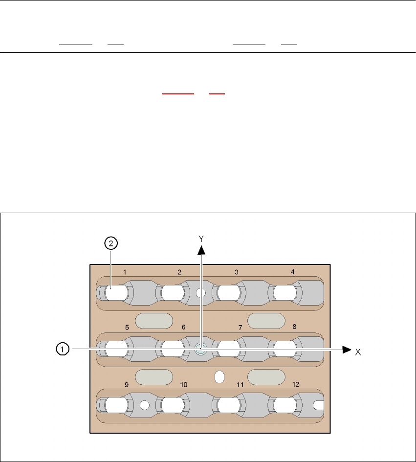 (2) Imiotsakute asukoht magasinis positsioneerimis-koordinaatmärgi suhtes.