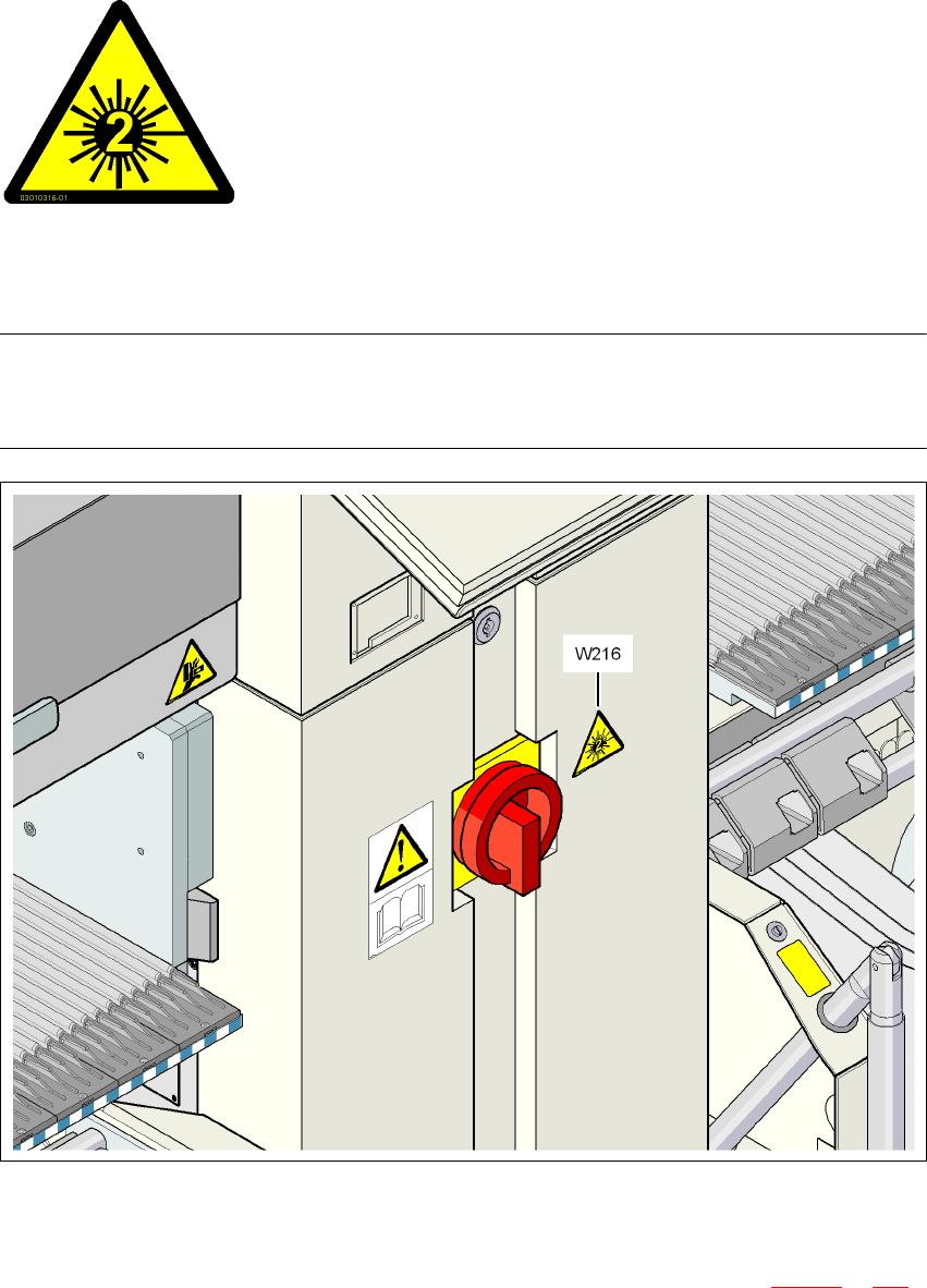 → Identifitseerige masin hoiatussildiga W216 "Laserklass 2", tootenumber 03010316-xx.