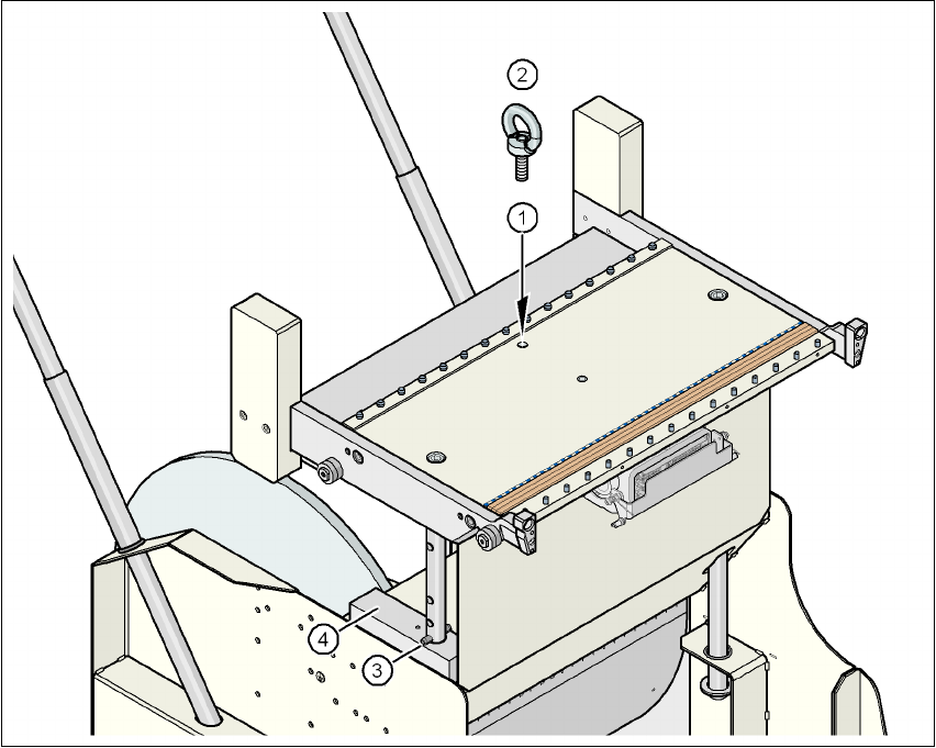 → Kruvige silmuspeaga polt komponentide käru laua raami M12 avasse (pos. 1, joon. 4.4 - 4