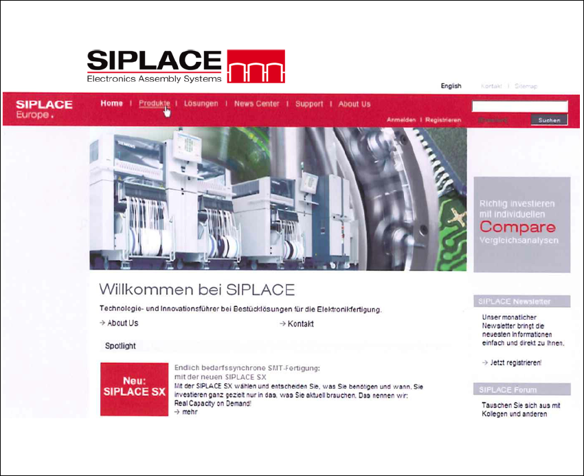 Registreeritud kasutajad saavad juurdepääsu SIPLACE kasutajate veebileheküljele SIPLACE