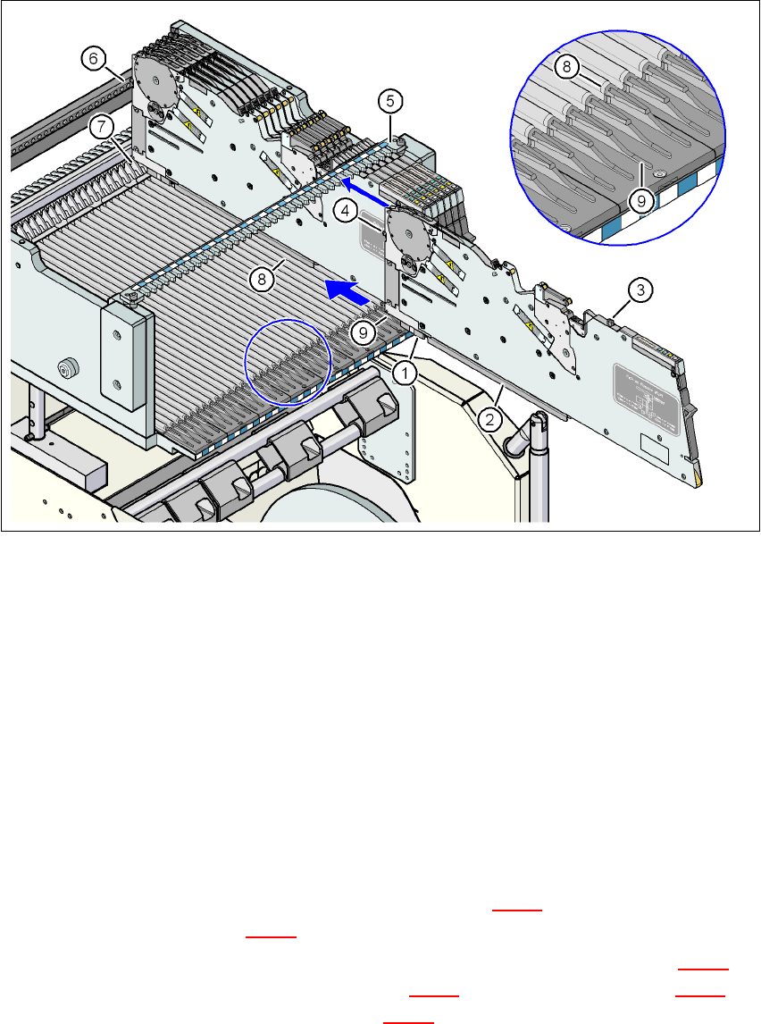 5 Tööpersonali ülesanded Kasutusjuhend SIPLACE X-Se eria 5.6 Sööturimoodulite ülesseadm ine Tarkvaraversiooni S R.605.xx põhjal 07/ 2008 EE väljaanne 342 → Lükake sööturim oodulit ettev aatliku lt edasi , kuni "ees …