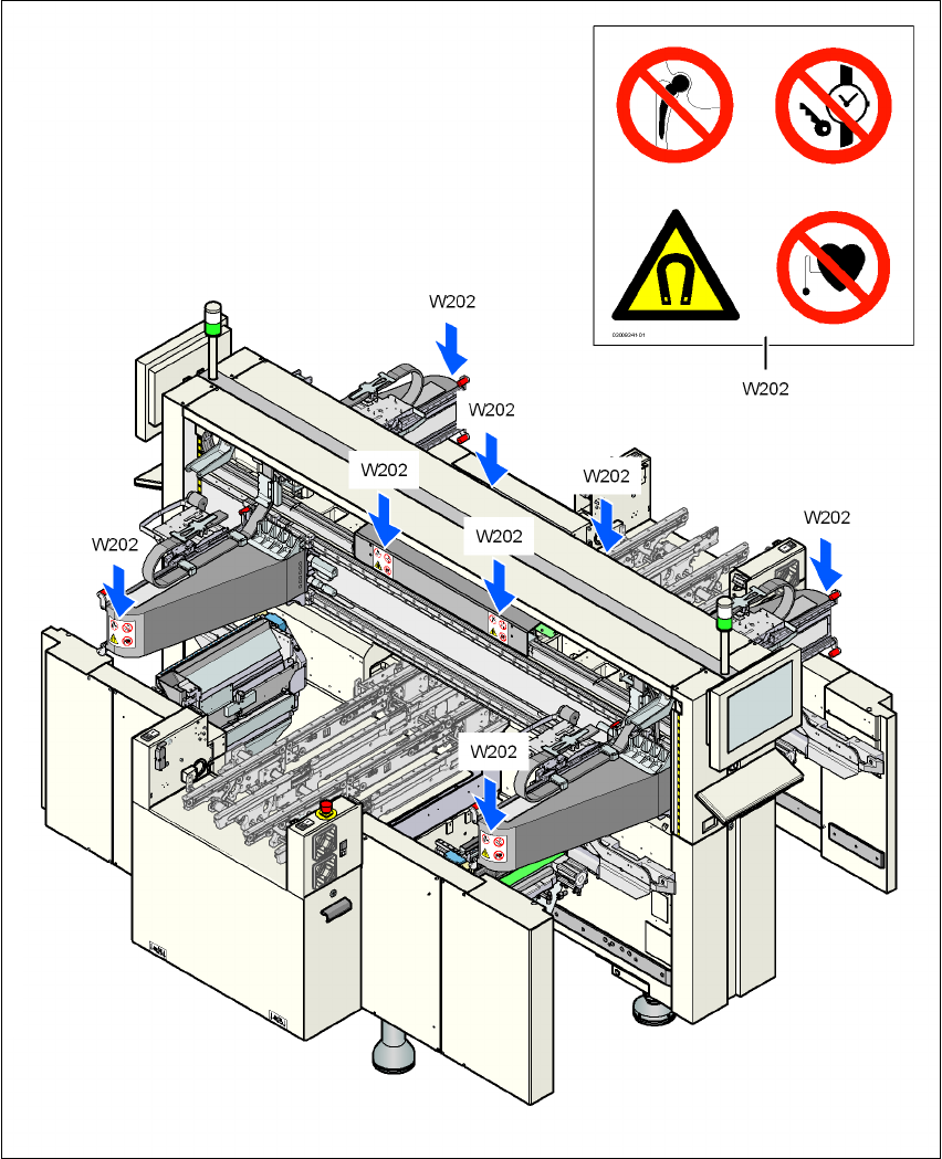 2 Tööohutus Kasutusjuhend SIPLACE X-Seeria 2.2 Hoiatavad sildid Tarkvaraversiooni SR.60 5.xx põhjal 07/ 2008 EE väljaanne 46 2.2.1.4 Hoiat av silt W210 2 Pos. W21 0 joon. 2.2 - 1 , lk 43 ja 2.2 - 2 , lk 44 , tootenumbe r…