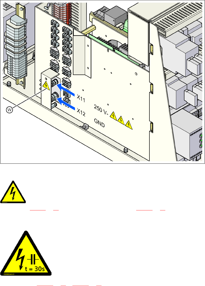 Joon. 2.2 - 11 Hoiatav silt W servovõimendi toiteploki kaanel