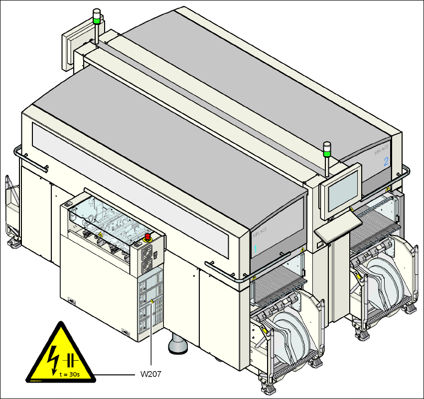 Kasutusjuhend SIPLA CE X-Seeria 2 Tööohutus Tarkvaraversiooni S R.605.xx põhjal 07/2008 EE väljaanne 2.2 Hoiatavad sildid 57 2.2.4.5 Hoiat av silt W207 toiteploki sis selülitusvoolu piirajal 2 Joon. 2.2 - 13 Hoiatav silt…