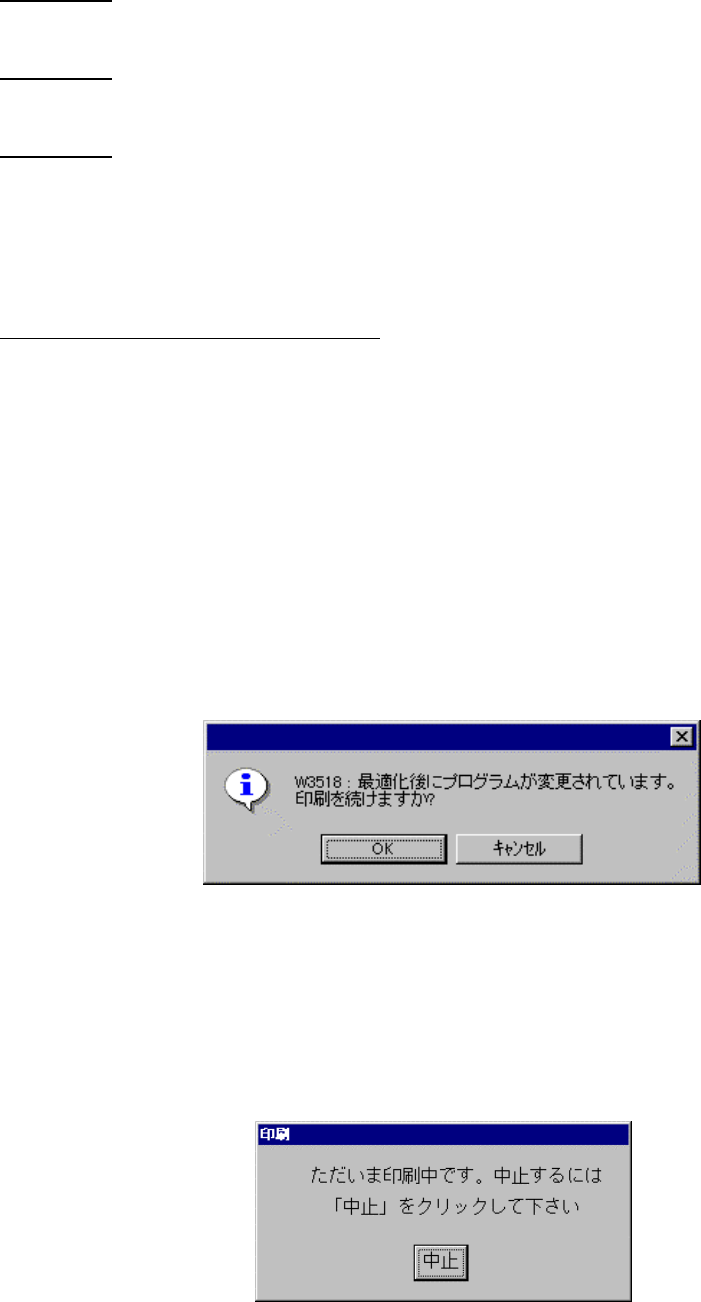 ◇ 印刷実行後 下記のダイアログが表示された場合,最後に最適化を実行した後にプログラムデ
