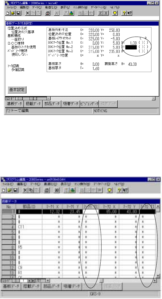 手順1)基板データ画面の該当BOCマーク点のD=のセルにカーソルを移動します。