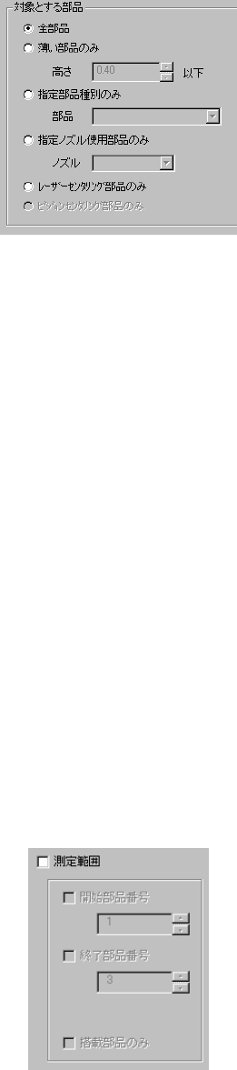 部品高さがエディットボックスに設定された以下の値の部品のみ測定します。