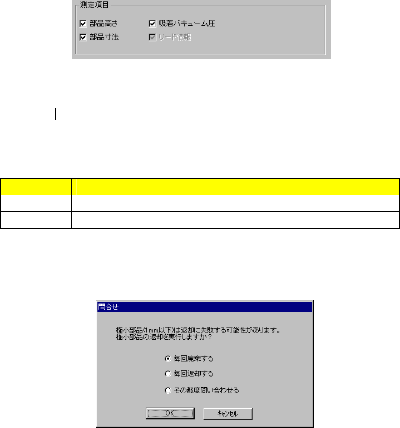 1つの測定が終了するたび1mm 以下の部品であれば、ダイアログを表示し問い合わせします。