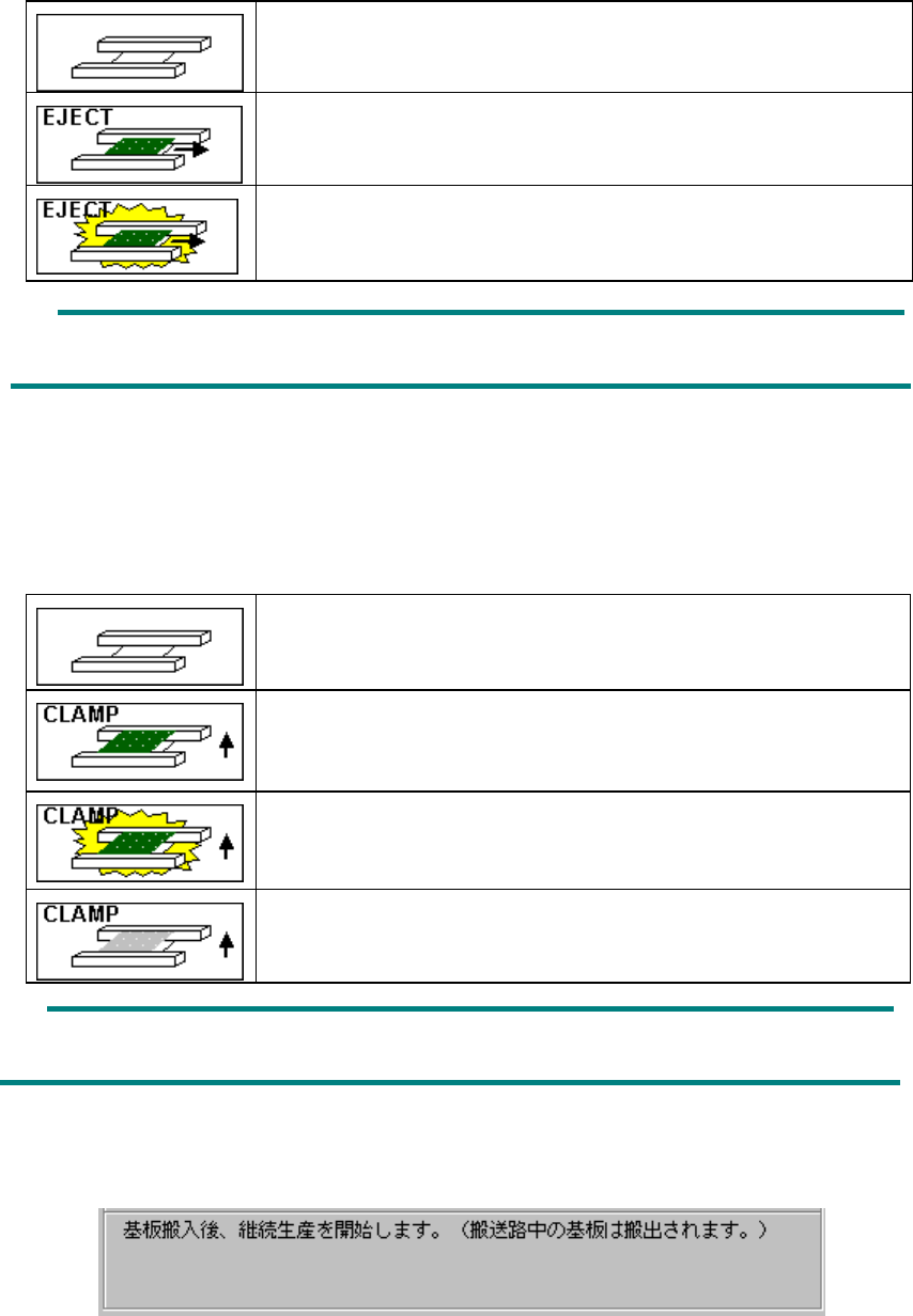7 – 79 ② 生産動作 生産開始前処理ダイア ログは継続生産フ ァイルが有る場合もない場 合も、基板搬入後 生産 を行うか、再クランプを行うかの表示をします。 図 図 図 図 7-4- 14-1-2 基板搬入後生産・再クランプ後生産の選択 基板搬入後生産・再クランプ後生産の選択 基板搬入後生産・再クランプ後生産の選択 基板搬入後生産・再クランプ後生産の選択 ここで、「基板搬入後生産」を選択した時は、搬送路上に基板がある場…