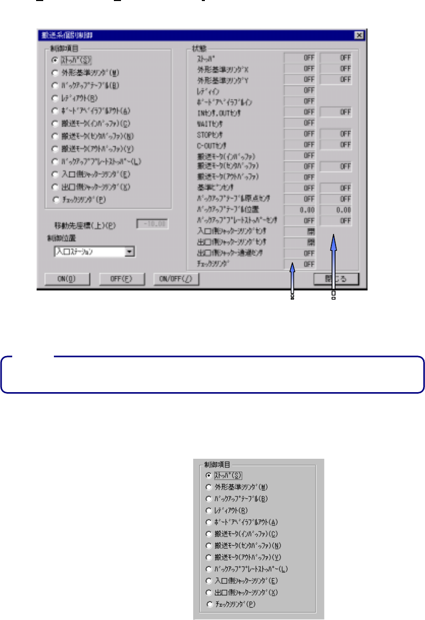 搬送系個別制御ダイアログ搬送系個別制御ダイアログ
