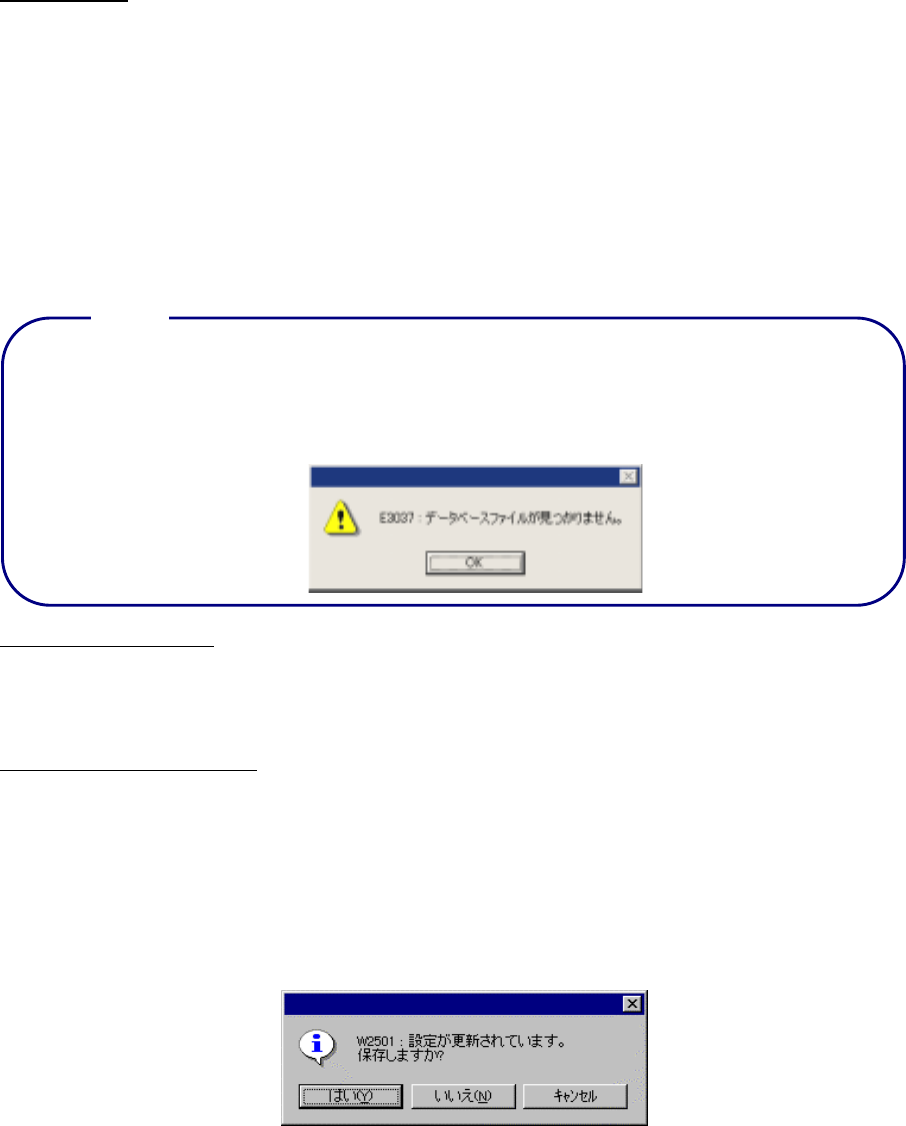 プログラム編集起動時に、下図のメッセージが表示された場合、データベースファイルが存在するかどう