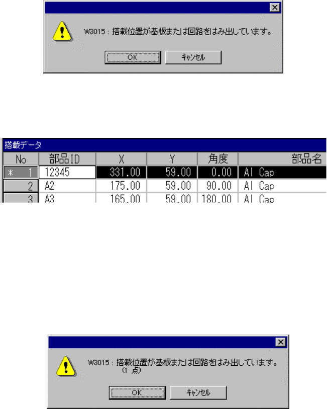 搭載位置 X または Y を入力した時点,またはそれぞれを変更した時点で,範囲チェックが行