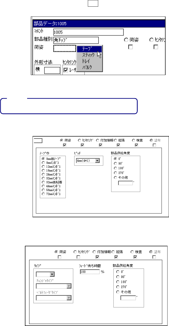 部品荷姿を変更すると,吸着データの供給指定は自動選択となります。