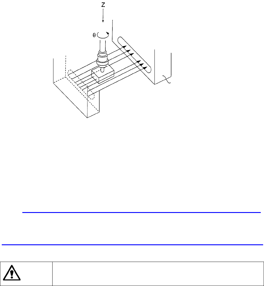 Z 軸の上下により、バキュームで部品を吸着し、部品にレーザ光を当てます。部品でレーザ光がさえ