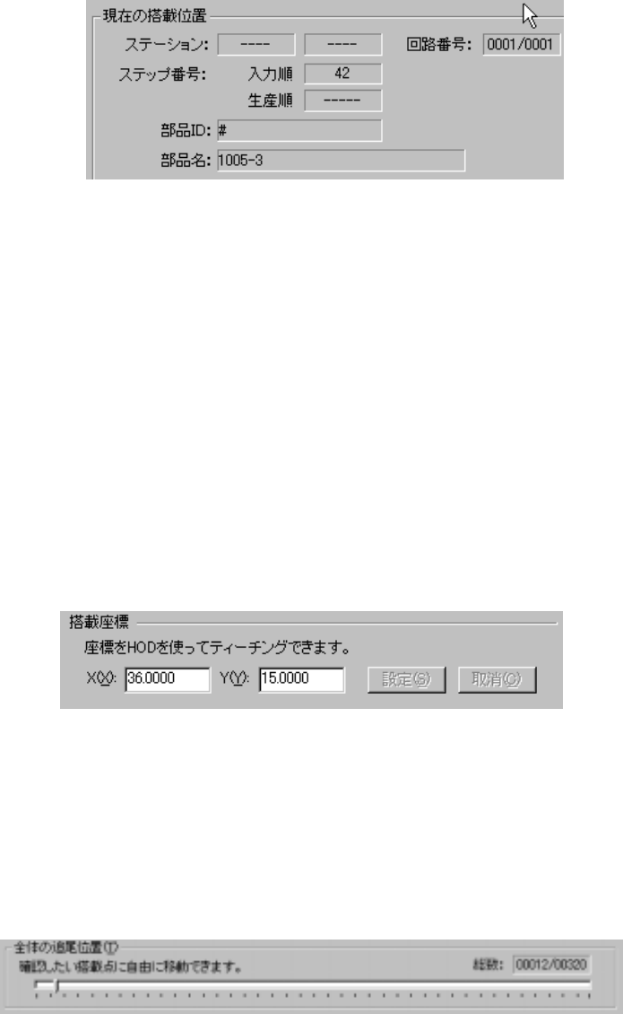 追尾中の搭載座標です。座標値は手入力またはティーチングで変更できます。