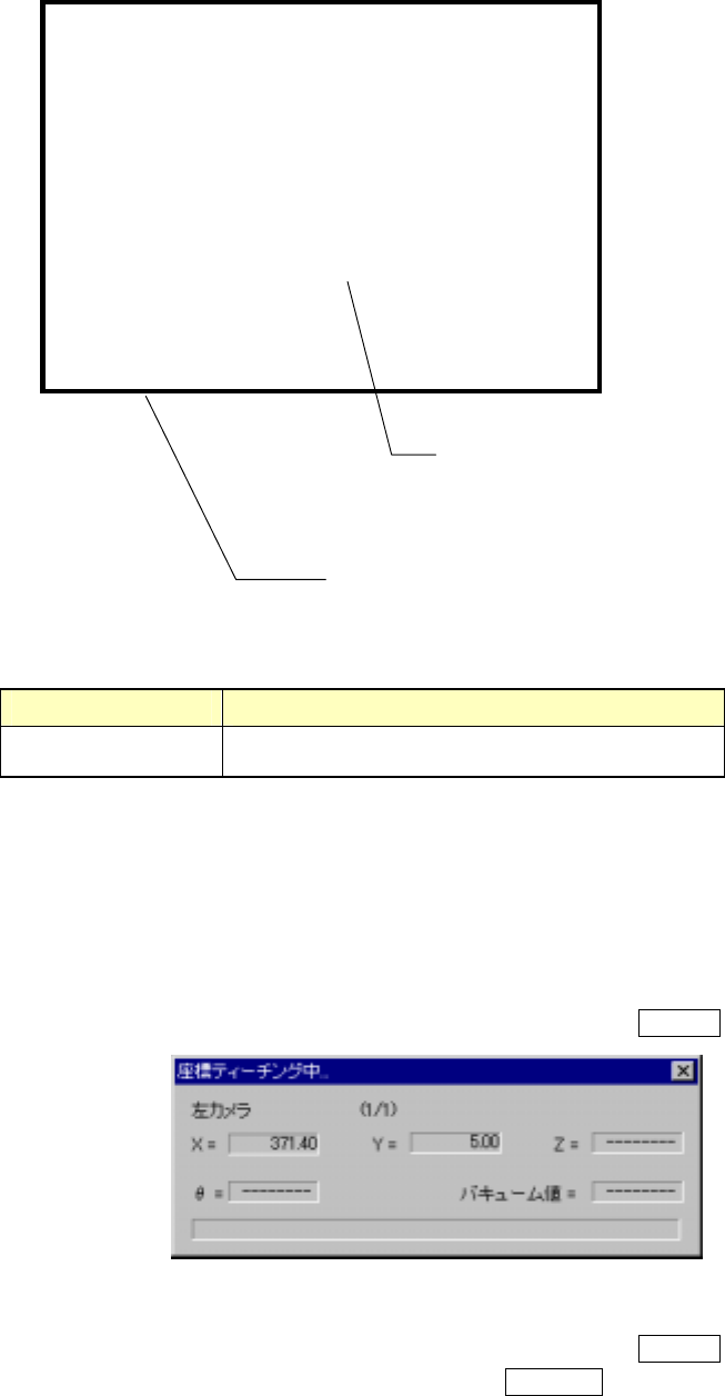 4 - 201 (5) モニター表示 モニター表示 モニター表示 モニター表示 ① 吸着座標追尾 実行中は各吸着点毎に以下の情報がモニター出力されます。 部品サイズによってモニターに表 示される部品中心および四 隅の表示は以下のように異なりま す。 フロントフィーダでの大型部品の 四隅表示は移動不可能座標 上にあることが多く表示されませ ん。 ( フロントフィーダ) フロントフィーダ) フロントフィーダ) フロントフ…