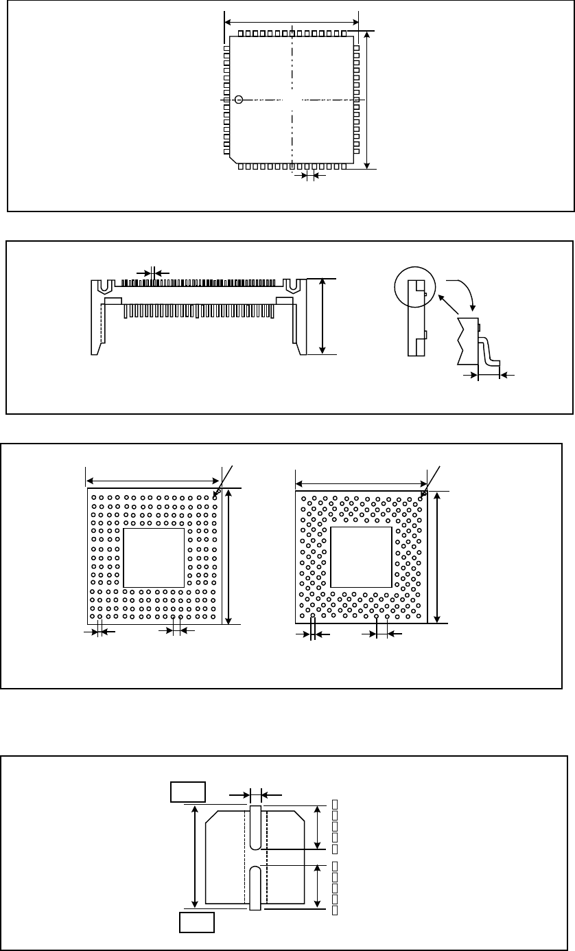 5 – 4 ⑨ GaAsFET(図はトップビュー) ⑩ Jリードソケット(図はトップビュー) ⑪ ガルウィングソケット(図はトップビュー) リード幅上下 1:ゲート 2:ソース 3:ドレイン 4:ソース リード長左右 リード長左右 外形寸法 部品高さ リード長 リードピッチ 外形寸法 部品高さ 外 形 寸 法 リード長 リードピッチ 外形寸法