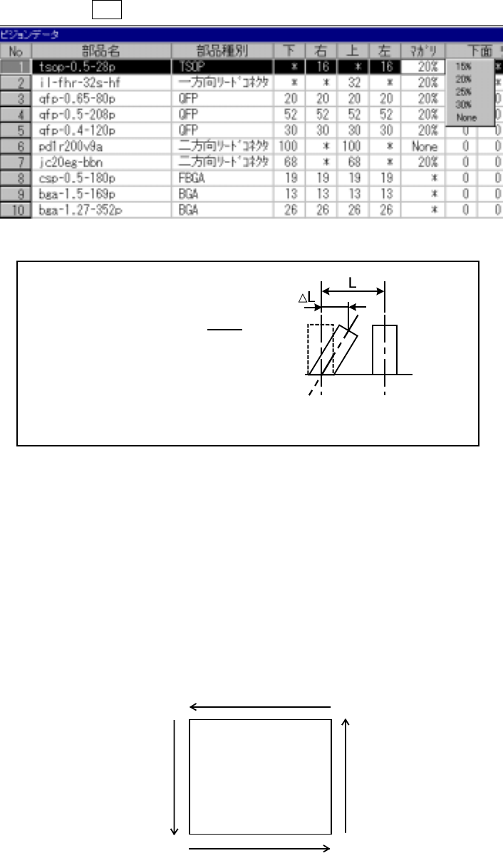 5 – 21 ● QFPの QFPの QFPの QFPの下面にリード欠落があった場合の設定値を 下面にリード欠落があった場合の設定値を 下面にリード欠落があった場合の設定値を 下面にリード欠落があった場合の設定値を図 図 図 図 5-2-3- 10-2 . . . .に示します。 に示します。 に示します。 に示します。 例.下面欠落ピンが、1ピン、8,9ピン、15,16、17ピンの場合 図 図 図 図5 5 5 5- - - -2…