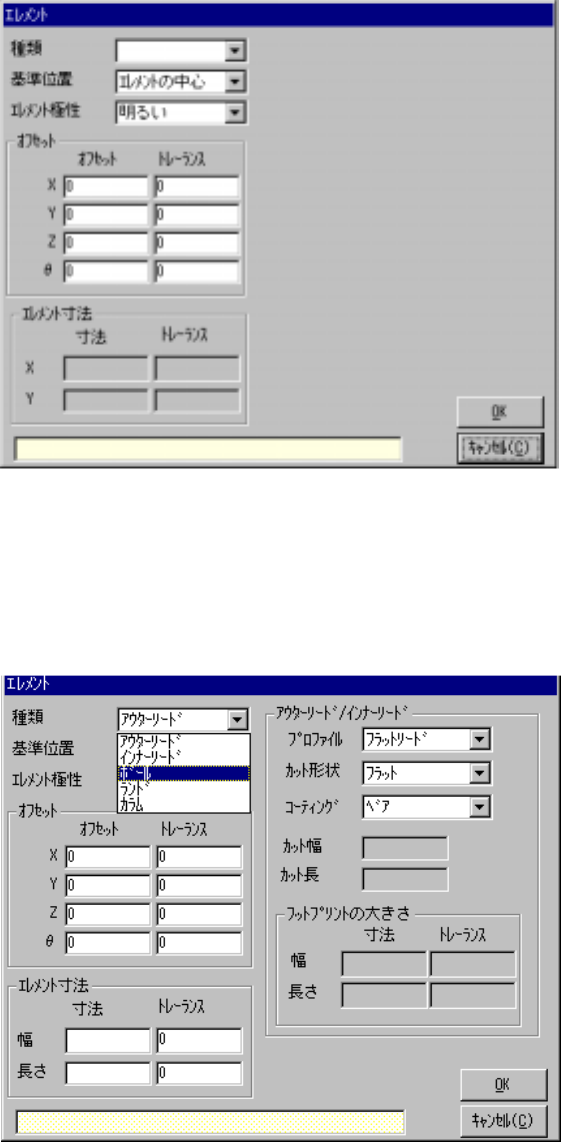 ● さらに、エレメントの種類を選択すると以下のよう画面が上のダイアログの