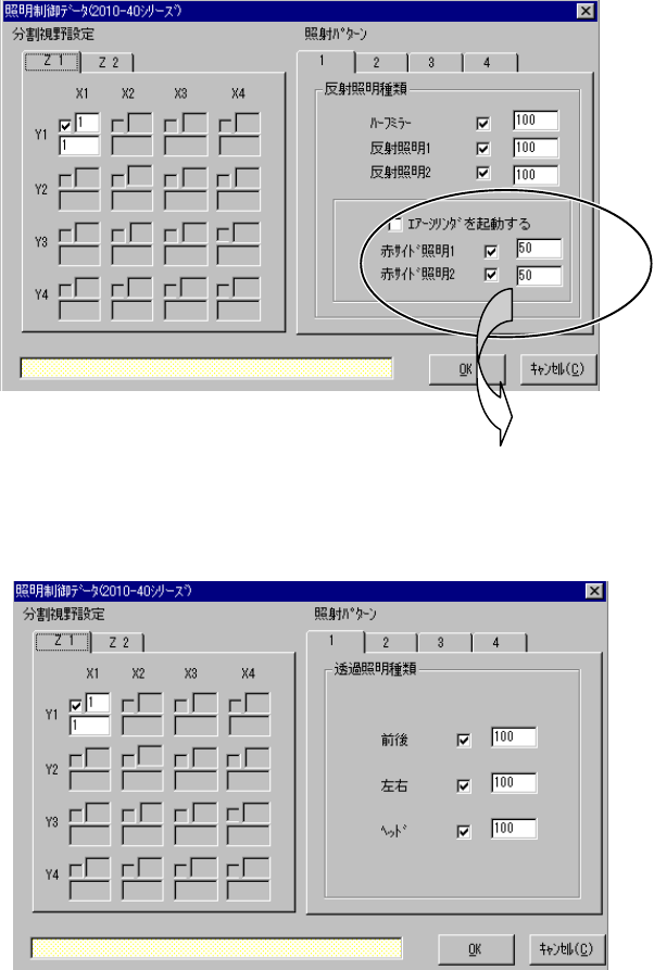 ・照明制御データの”分割視野設定” :制御項目の分割認識の数値設定によって、入力可