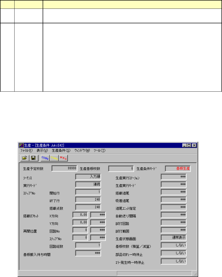 生産条件画面(生産開始前表示画面)生産条件画面(生産開始前表示画面)