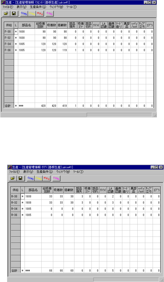 生産管理情報はメニューバーの[ウィンドウ → 生産管理情報 → リア]により 図 7-2-3-1-3 を