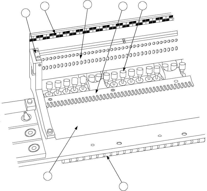 1 - 28 1. フィーダバンクの各部の名称(図 フィーダバンクの各部の名称(図 フィーダバンクの各部の名称(図 フィーダバンクの各部の名称(図 1-2-3-2 ) ) ) ) テーピングされた部品及び、スティックに入った部品をセットしたテープフィーダ、バル クフィー ダ,スティックフィーダをフィクシングプレート②,ロックシャフト④で位置決め,固定します。 部品送りはドライブシリンダ⑤で駆動されます。 各フィーダをセットする位置は、ポ…