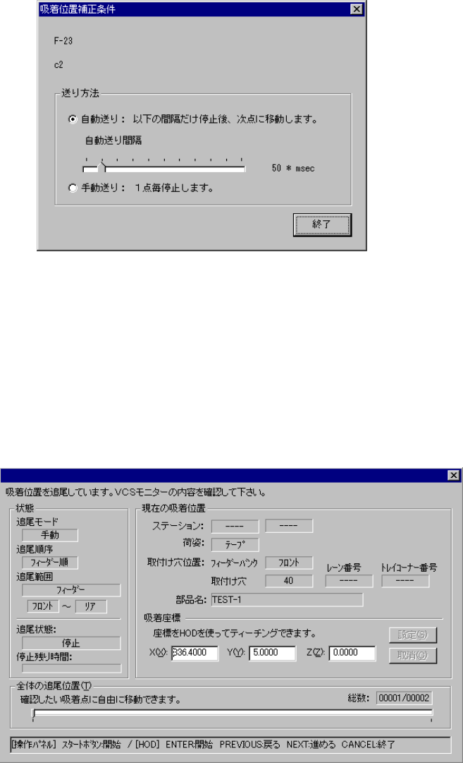 リトライリストダイアログで“吸着追尾”ボタンが選択されると,図 7-3-3-2-1 を表示して,吸着