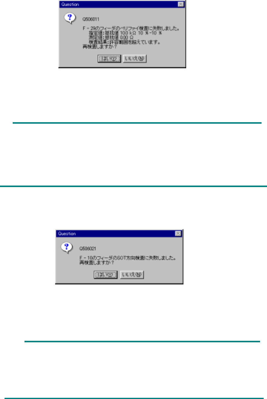 <はい>を選択すると,検査を失敗したフィーダの部品を再検査します。