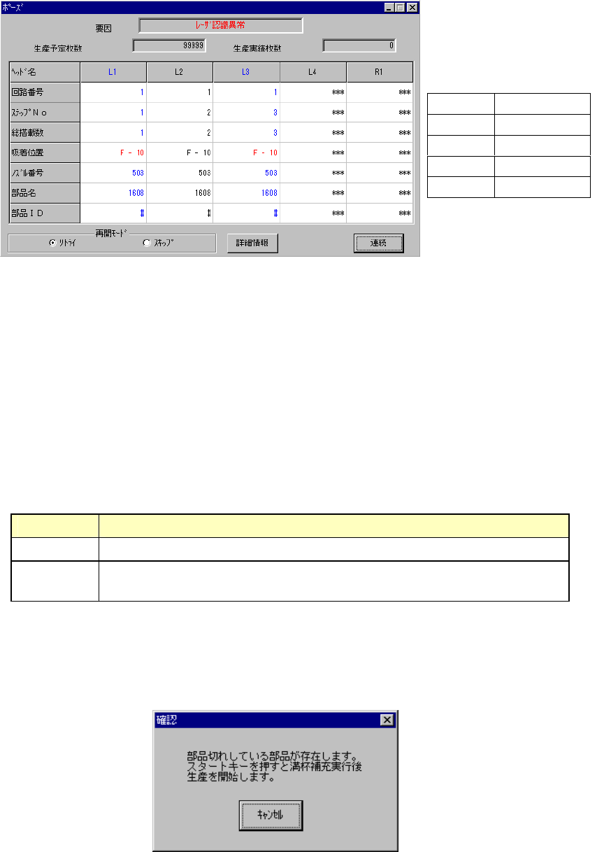 また、リトライを選択した場合で、エラーを起こした供給装置が部品切れを起こしていた場合